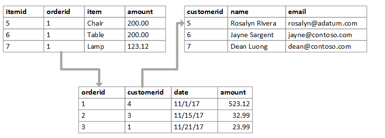 - 테이블은 외래 키를 사용하여 서로 연결됩니다.