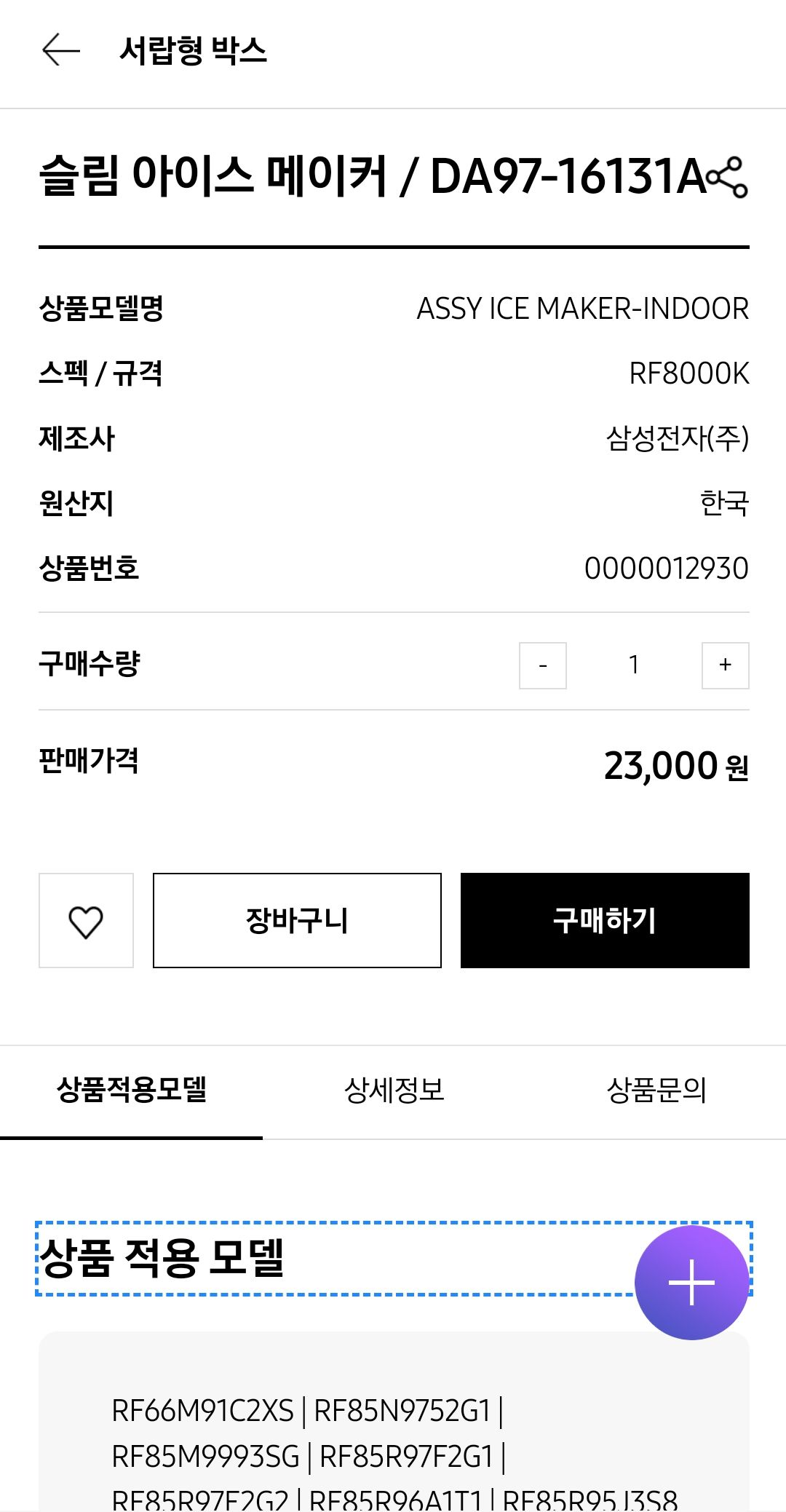 해당 부품이 적용되는 모델도 확인 가능하니 모델 명도 확인 해주세요.